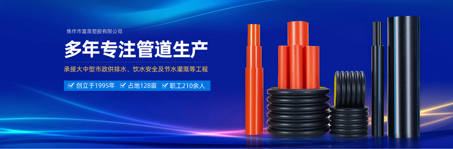 - 焦作市富泉塑胶有限公司,创立于1995年,是一家集研发、设计、生产、销售为一体的大型管材企业。公司位于太极故里、黄河之滨一一河南焦作温县。公司占地128亩,现有职工210余人,其中具有中技术职称的19人。生产、检验设备58台(套),包括PVC实壁管生产线11套、PE实壁管生产线12套、HDPE双壁波纹管生产线6套、PVC双壁波纹管生产线5套,检验设备14台(套)。主要产品有:Φ20mm-630mm、各种压力规格的PVCU、PVC-M、PE给水管材,PVC-U节水灌溉管材,HDPE燃气和矿用管材,DN200-800mm的HDPE、PVC双壁波纹管及各种喷灌、滴灌工程材料。承接大中型市政供排水、饮水安全及节水灌溉等工程?! 「蝗芙汗局厥硬返闹柿?、安全、环保和节能,在同行业中率先完成了“新华节水产品认证”,全方面通过ISO9001:2008国际质量管理体系、IS014001:2004环境管理体系和OHSAS18001职业健康安全管理体系的一体化导入,并建立起规范的现代企业管理体系。公司以“质量”为先导,采用质量跟踪、多环节把关的方法,组建具有行业水准的企业技术检测中心,常年委托水利部节水灌溉设备检测中心、河南省产品质量监督检验院对产品跟踪检测,并由中国人民保险公司承保产品质量。公司连续多年被河南省水利厅确定为“安全饮水设备、节水灌溉设备”定点生产企业,并获得“中国名优产品”“质量、服务、信誉AAA企业”“河南省**产品”“河南省水利企业”“河南省守合同、重信用企业”等荣誉称号?! 「蝗芙汗炯岢帧坝没稀钡姆窭砟?,长期以来,全方面关注客户价值,不断提升服务水平。服务队伍常年为客户的产品设计、施工、安装提供合理的方案和全程细致、周到、**、快捷的技术服务。公司自成立以来,一直坚持以人为本的宗旨,塑造企业形象,并致力于新产品的开发,凭借雄厚的技术开发能力,先进的工艺制造流程,严格的质量管理保证体系,优良的售后服务网络,已成为河南省大的饮水、灌溉及排水管材设备制造商。产品畅销全国,而且还以公司雄厚的综合实力在业界中占据着重要的地位。